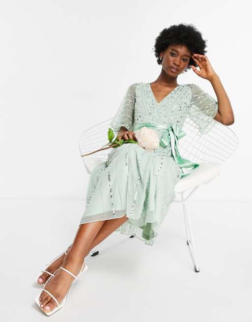 Vestido de dama de honor midi verde salvia con diseño adornado de Frock and Frill