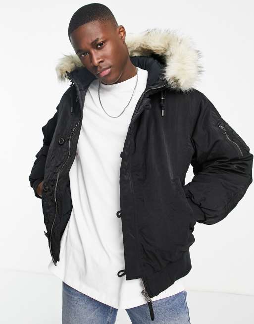 Chaqueta bomber negra con capucha con ribete de piel sintética Arctic de Gant