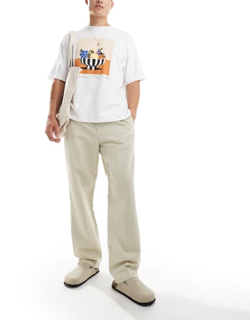 Pantalones beis con cordón ajustable de lino y algodón de GANT