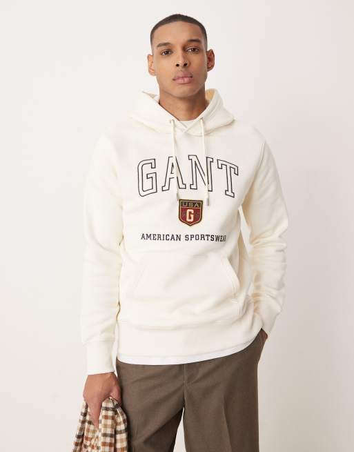 Sudadera color crema con capucha y logo universitario de GANT