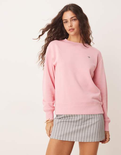Sudadera rosa con cuello redondo y logo de escudo de GANT