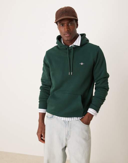 Sudadera verde oscuro con capucha y logo de escudo de GANT