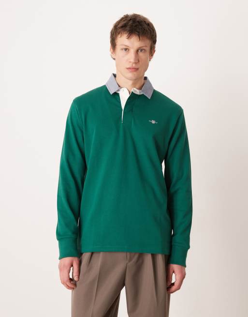 Top verde bosque de estilo rugby con solapas en contraste y logo de tejido grueso de GANT