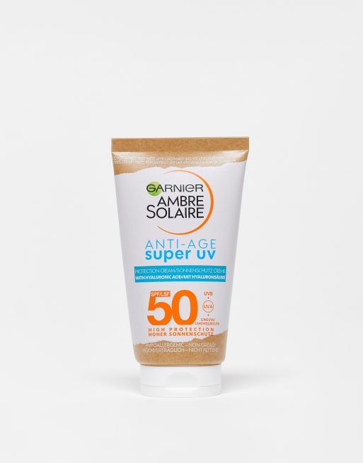 Crema protectora solar facial antiedad con FPS 50 Super UV de 50 ml de Garnier Ambre Solaire