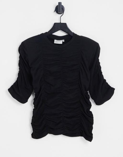 Camiseta negra fruncida de punto Ariana de Gestuz