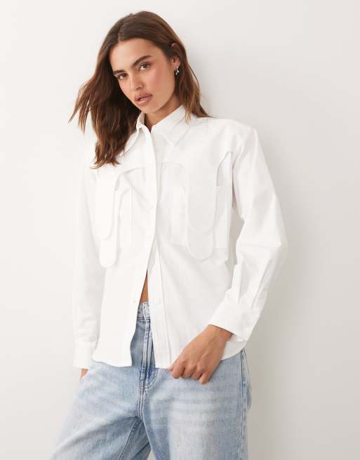 Ghospell - Camisa blanca de manga larga con detalle de lazo de algodón