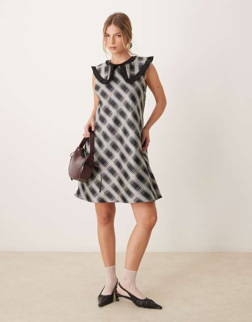 Vestido corto negro y blanco con solapas extragrandes de Ghospell