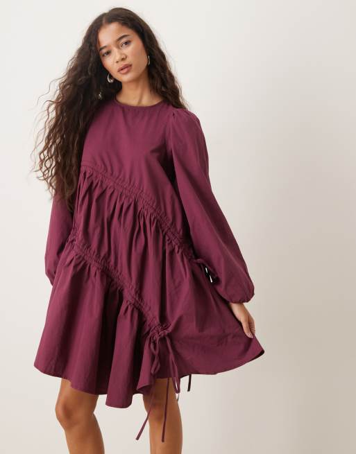 Vestido corto rojo fruncido extragrande de Ghospell