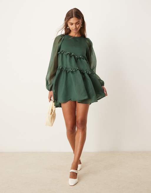 Vestido corto verde esmeralda de organza Ayesha de Ghospell