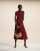 Vestido semilargo burdeos con costuras curvadas en contraste de Ghospell