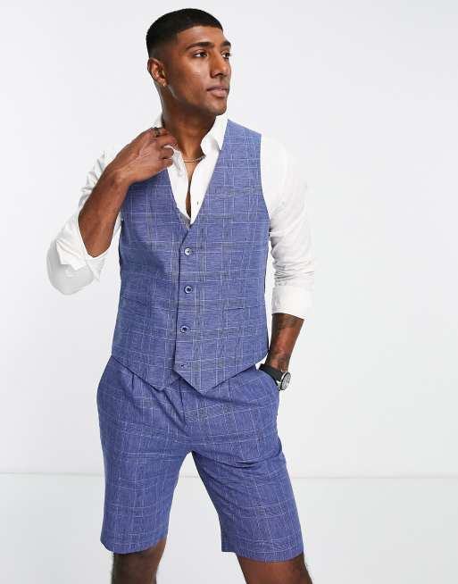 Chaleco de traje azul a cuadros de Gianni Feraud