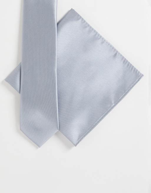 Corbata y pañuelo de bolsillo plateados de Gianni Feraud
