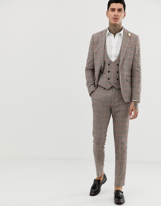 Traje ajustado con cuadros pequeños de Gianni Feraud