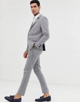 Traje ajustado en mezcla de lino a cuadros de Gianni Feraud