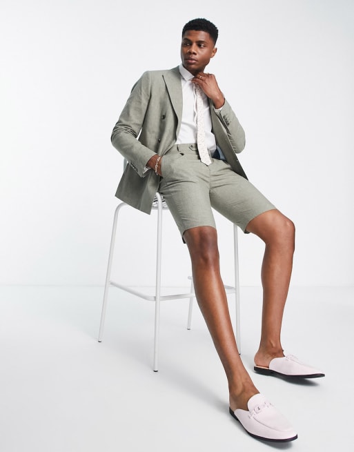 Traje verde claro de corte slim de lino de Gianni Feraud Wedding