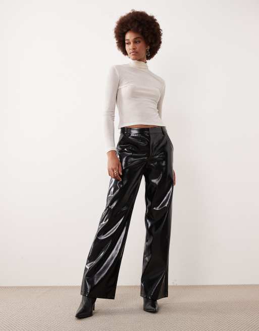 Pantalones negros de corte recto de poliuretano revestido de Gina Tricot Tall