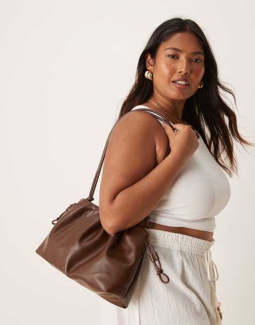 Bolso de hombro marrón oscuro estilo bolsita de Gina Tricot