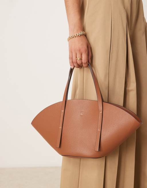Bolso shopper pequeño marrón camel ancho de cuero sintético de Gina Tricot