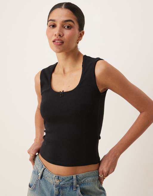 Camiseta negra de tirantes con ribetes bordados de algodón de Gina Tricot