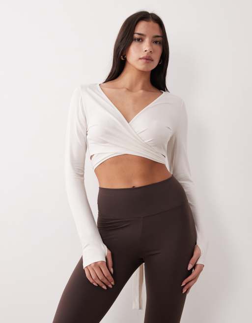 Cárdigan corto blanco cruzado para yoga de Gina Tricot