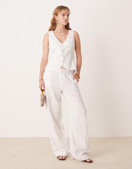 Conjunto blanco de pantalones y chaleco de tejido rico en lino de Gina Tricot
