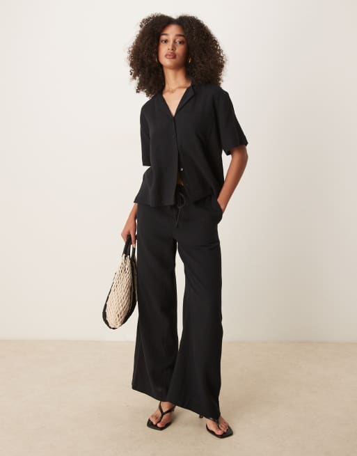 Pantalones negros holgados con cordón ajustable de gasa de Gina Tricot (parte de un conjunto)