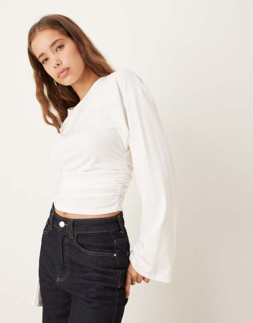 Top blanco hueso con mangas anchas de tejido muy suave de Gina Tricot