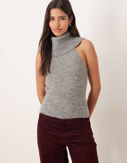 Top gris medio melange sin mangas con cuello alto de punto grueso de Gina Tricot