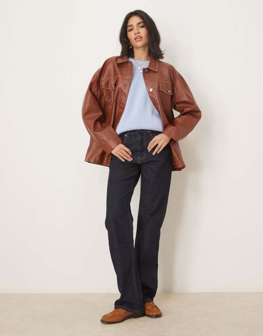 Vaqueros de talle medio y pernera recta holgada con lavado azul añil enjuagado de Gina Tricot (parte de un conjunto)