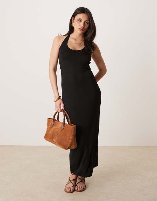 Vestido semilargo negro con cuello halter anudado y espalda descubierta de Gina Tricot