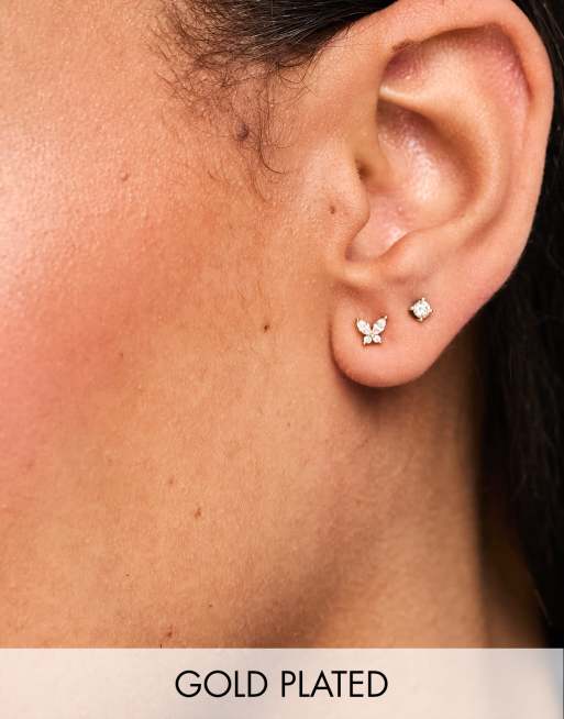 Pendientes de botón con detalle de circonitas chapados en oro de 18 quilates Mari de Girls Crew