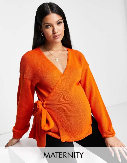 Cárdigan naranja cruzado en la parte delantera de punto grueso de Glamorous Bloom
