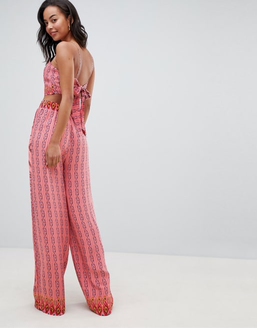 Conjunto de pantalón y top corto con estampado azteca de Glamorous Tall