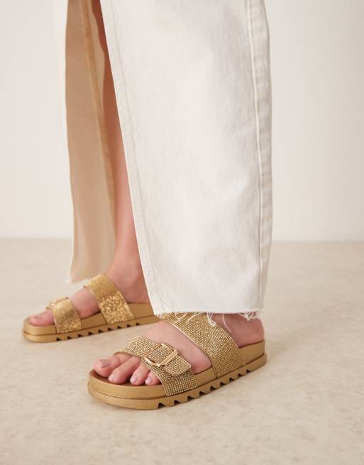 Sandalias doradas con correas con pedrería de Glamorous Wide Fit