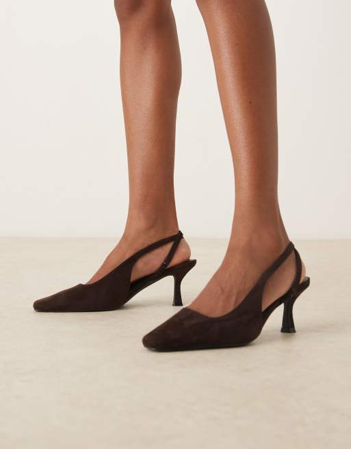 Zapatos marrón expreso destalonados de tacón bajo de ante de Glamorous Wide Fit