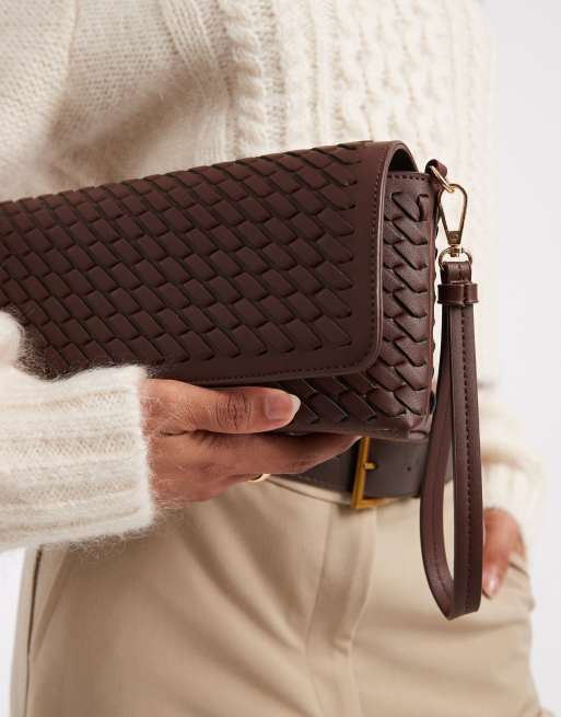 Bolso clutch marrón oscuro entretejido de Glamorous