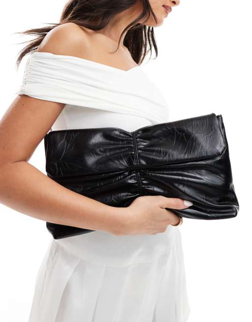 Bolso clutch negro fruncido de charol de Glamorous