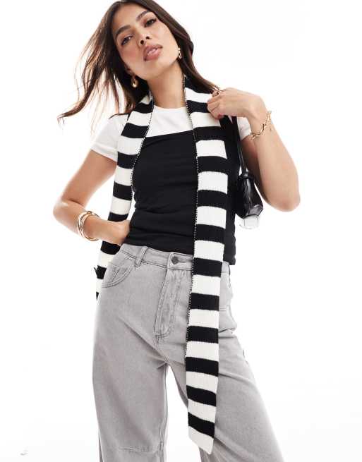 Bufanda negra y blanca a rayas estrecha de punto de Glamorous