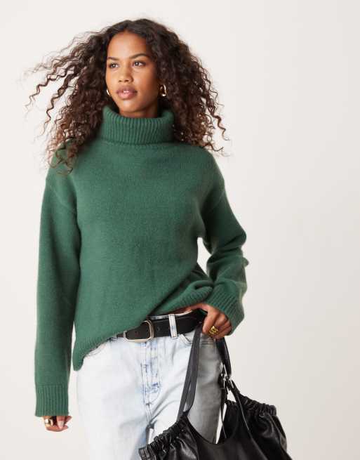 Jersey verde escolar holgado con cuello vuelto de punto de Glamorous