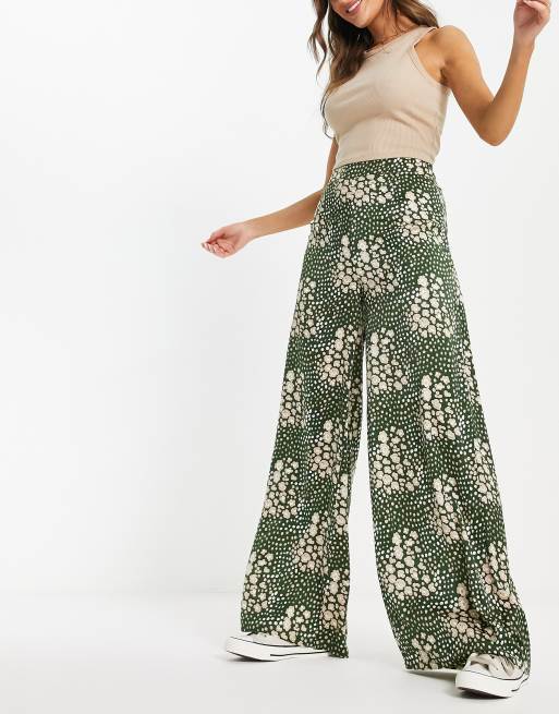 Pantalones verdes de pernera ancha y talle alto con estampado de leopardo de Glamorous