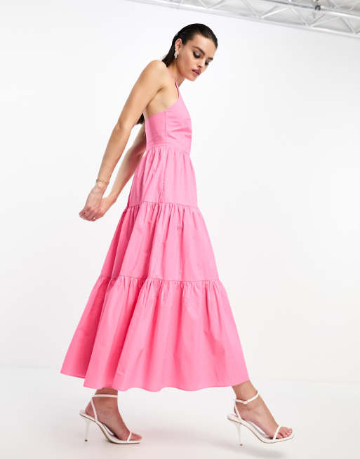 Vestido midi rosa escalonado con cuello halter de Glamorous