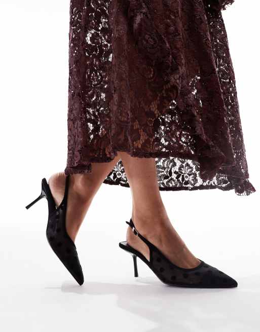 Zapatos negros destalonados de tacón bajo con estampado de lunares de malla de Glamorous