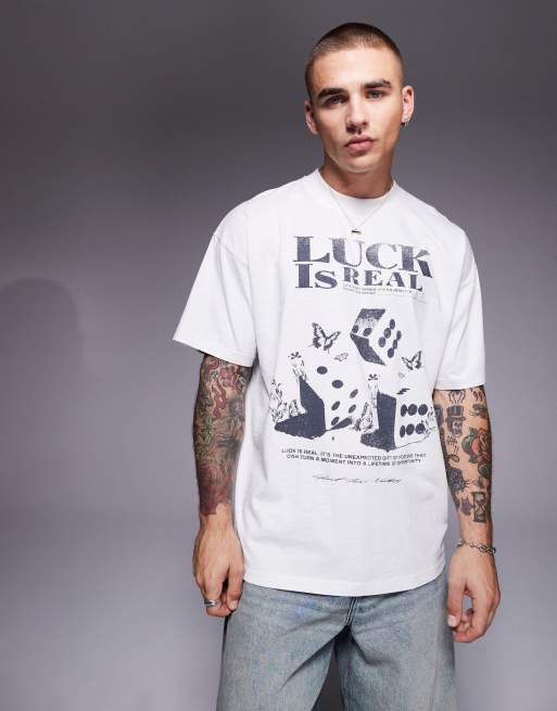 Camiseta blanco hueso extragrande con estampado "Luck" de Good For Nothing