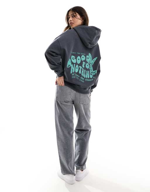Sudadera gris con capucha y estampado trasero de Good For Nothing