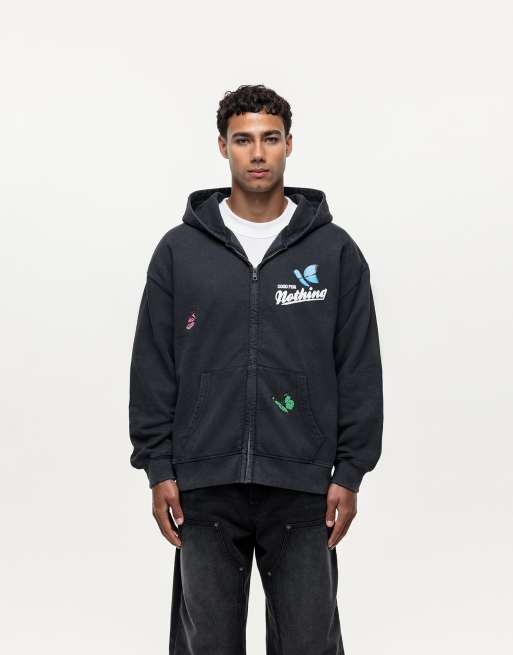 Sudadera negro lavado con capucha, cremallera y bordado de Good For Nothing