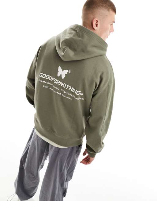 Sudadera verde con capucha y estampado en relieve de Good For Nothing