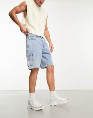 Pantalones cortos vaqueros de estilo carpintero con lavado claro de GUESS Originals