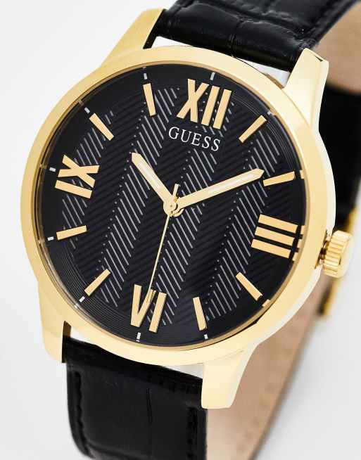 Reloj dorado y negro con correa de cuero Campbell de Guess
