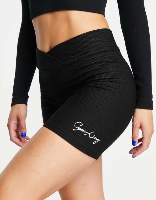Pantalones cortos negros ajustados de punto de arroz de Gym King