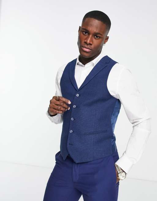Chaleco de traje azul marino de mezcla de lino de Harry Brown Wedding